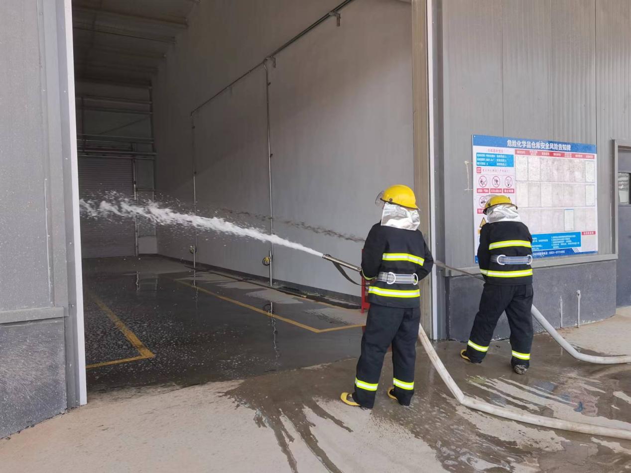 演練開始前,由應急救援總指揮為參加演練的員工們就如何正確使用消防器材、火災基本常識、?;穫}庫甲類庫物料特性、滅火基本常識等知識進行了詳細講解,并對此次演練活動提出了相關要求。演練中,參演人員全程按相關應急預案進行,大家認真對待,服從指揮,演練活動有序進行。經(jīng)過緊張有序高效的應急處置工作,有效控制和處置,“火災”被完全撲滅,演練圓滿結束。