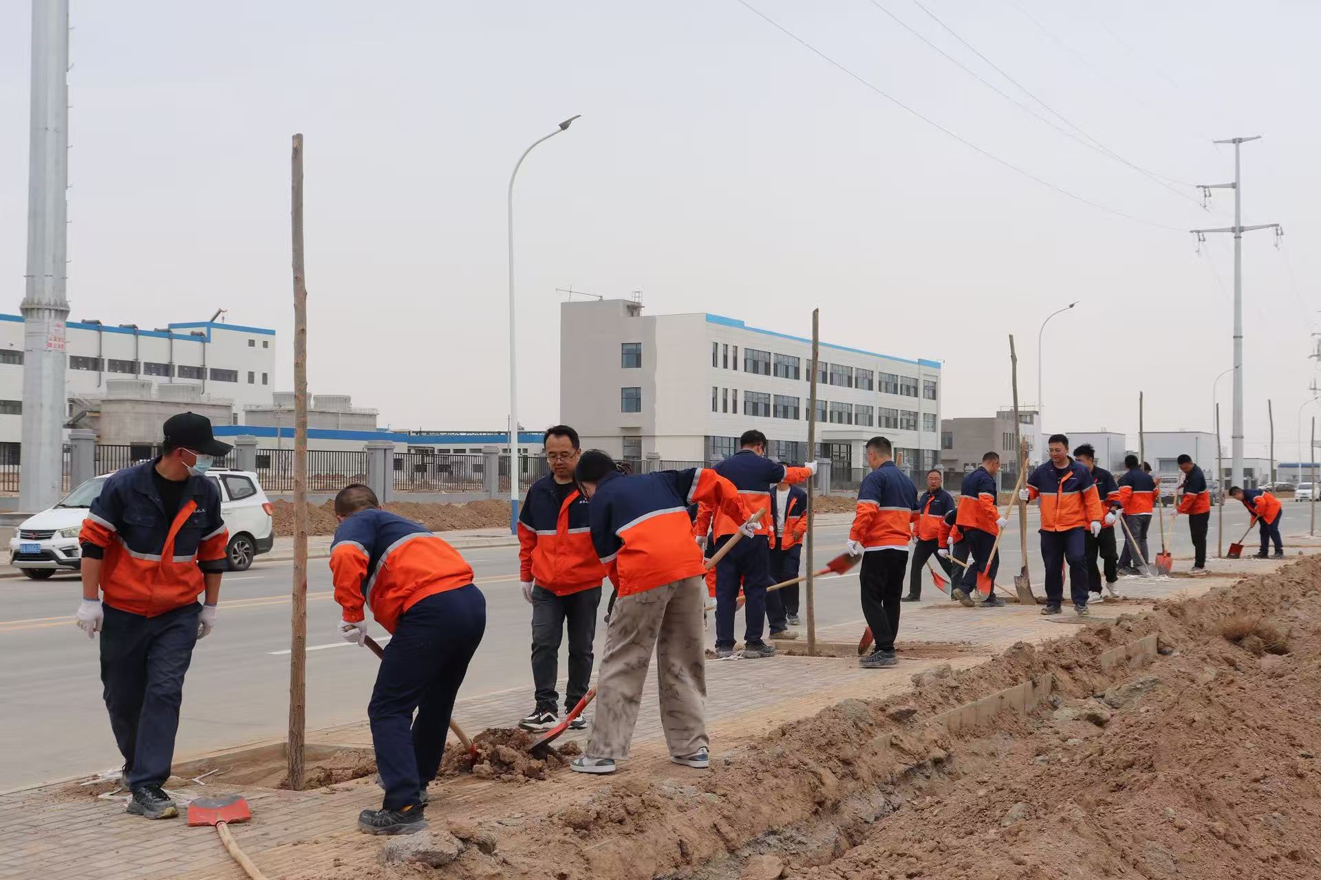 春回大地,草木萌發(fā)。為深入踐行習(xí)近平總書記提出的“綠水青山就是金山銀山”理念,厚植綠色發(fā)展底色,2026年4月8日下午,蘭州新區(qū)化學(xué)工程有限公司組織全體職工在蘭州新區(qū)化工園區(qū)緯五十一路開展春季義務(wù)植樹活動?;顒右浴爸簿G護(hù)綠人人參與,美麗園區(qū)人人共享”為主題,既是對石化集團(tuán)和蘭州新區(qū)“共建綠色化工園區(qū)、推動綠色發(fā)展”要求的積極踐行,也是公司厚植綠色發(fā)展底色、凝心聚力共建美好家園的生動實(shí)踐。