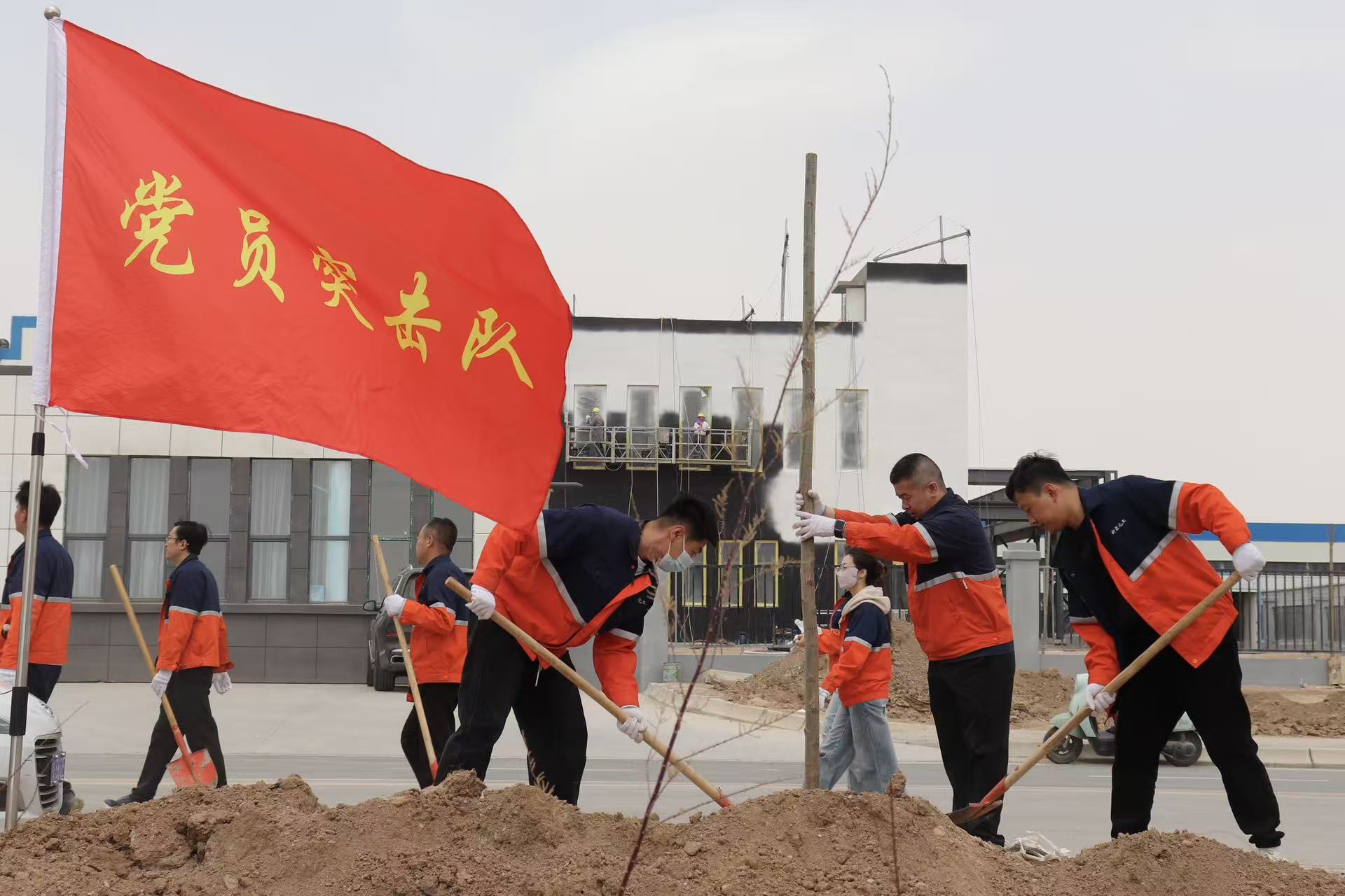 下午13:30,全體職工統(tǒng)一著工服、黨員佩戴黨徽,在公司辦公樓門口集合后有序前往植樹地點(diǎn)。抵達(dá)后,職工們按3人一組,2人揮鍬、1人提水,迅速投入勞動。大家分工協(xié)作,揮鍬鏟土、扶苗填坑、踏土夯苗、提水澆灌,現(xiàn)場熱火朝天卻井然有序。工具組提前將鐵鍬、水桶、手套等物資擺放到位,安全組全程巡查確保規(guī)范作業(yè),宣傳組穿梭于勞動現(xiàn)場,用鏡頭定格下一幕幕團(tuán)結(jié)協(xié)作的瞬間。大家熱情高漲、配合默契,處處洋溢著實(shí)干奮進(jìn)的濃厚氛圍。經(jīng)過共同努力,集團(tuán)分配的209棵樹苗全部按計(jì)劃種植完成。