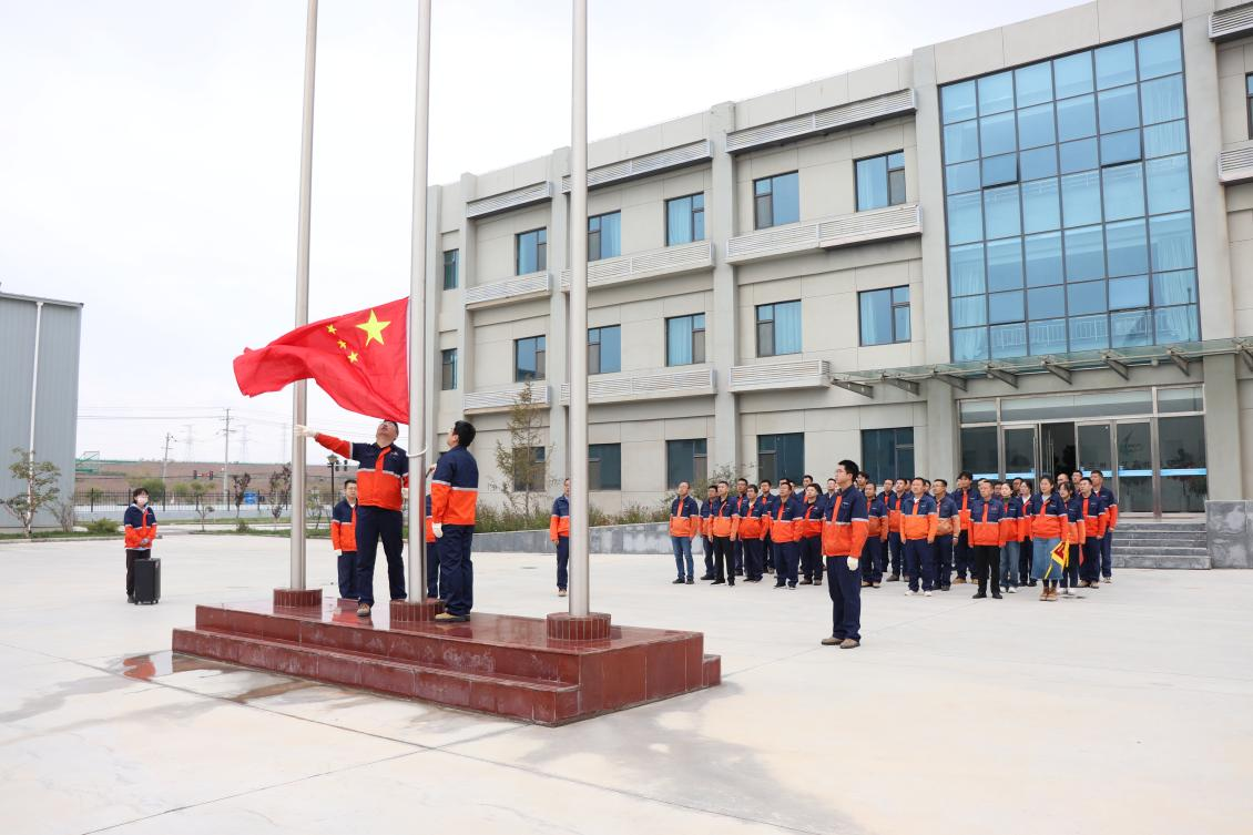9月30日,化工熱電公司廣場上,五名旗手昂首闊步,全體職工莊嚴肅立,伴隨嘹亮的國歌,目送五星紅旗冉冉升起,迎風飄揚。