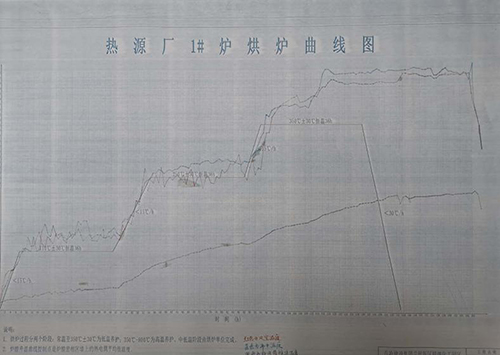此次烘爐采用帶壓烘爐的方式,在點火風(fēng)道等處共布置6臺烘爐機,鍋爐升溫分為三個階段,分別是:常溫~110℃、110~250℃及250~350℃,烘爐完成后按照溫度小于30℃/h降溫冷卻。由于內(nèi)襯材料密度高、厚度大,水分析出需均勻緩慢,精準(zhǔn)的溫度控制是烘爐成功的關(guān)鍵,熱源廠運行人員24小時輪班作業(yè),嚴(yán)密監(jiān)控和采集實時數(shù)據(jù),對數(shù)據(jù)進行分析比對和測算,并根據(jù)運行現(xiàn)狀和發(fā)展趨勢適時調(diào)整油壓和風(fēng)油配比,使溫升速率和預(yù)設(shè)曲線相吻合,游離偏差控制在±30℃以內(nèi)。