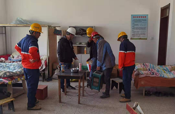檢查組對(duì)施工人數(shù)較多的康巴斯和污水廠項(xiàng)目開展詳細(xì)安全隱患摸排,逐個(gè)宿舍開展檢查,將宿舍內(nèi)違規(guī)使用的大功率電器進(jìn)行現(xiàn)場收繳,實(shí)地查看工人取暖設(shè)施,并檢查宿舍內(nèi)通風(fēng)情況。對(duì)使用火爐取暖的宿舍要求設(shè)置通風(fēng)口,并有專人值守;對(duì)使用電取暖的宿舍,嚴(yán)格杜絕使用大功率電器和假冒偽劣電熱毯。