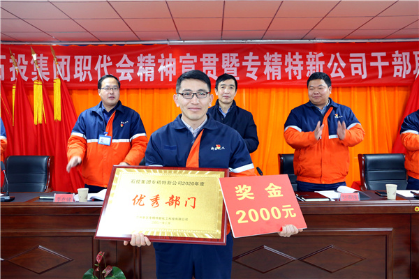 會(huì)上,對(duì)集團(tuán)公司第一屆一次職工代表大會(huì)暨2021年工作會(huì)議精神進(jìn)行了宣貫,并特別邀請(qǐng)集團(tuán)公司2020年勞動(dòng)模范雪生謀、劉宗強(qiáng)、楊少偉三名同志進(jìn)行了勞模精神宣講。 專精特新公司總經(jīng)理葉得強(qiáng)同志作了題為《奮楫破浪行 揚(yáng)帆啟新程 為助力集團(tuán)轉(zhuǎn)型發(fā)展不懈奮斗》的工作報(bào)告?;仡櫫藢>匦鹿?020年度經(jīng)營(yíng)目標(biāo)和重點(diǎn)工作完成情況,同時(shí)從堅(jiān)持以高質(zhì)量黨建推進(jìn)高質(zhì)量發(fā)展、深化機(jī)構(gòu)改革、激發(fā)隊(duì)伍活力、健全安全管理體系、提升生產(chǎn)運(yùn)行質(zhì)量、加快推進(jìn)項(xiàng)目建設(shè)、實(shí)現(xiàn)招商新突破、探索產(chǎn)業(yè)結(jié)構(gòu)調(diào)整等八個(gè)方面安排部署了2021年工作任務(wù)。 會(huì)上,專精特新公司負(fù)責(zé)人與各部門(mén)及子公司負(fù)責(zé)人簽訂了2021年度安全及經(jīng)營(yíng)目標(biāo)責(zé)任書(shū)。表彰獎(jiǎng)勵(lì)了2020年為公司項(xiàng)目建設(shè)、生產(chǎn)運(yùn)營(yíng),做出積極貢獻(xiàn)的優(yōu)秀部門(mén)和先進(jìn)個(gè)人。 姜錦在講話中充分肯定了專精特新公司2020年在項(xiàng)目建設(shè)、招商引資、企業(yè)管理等工作方面取得的成果,并針對(duì)人才隊(duì)伍建設(shè)、項(xiàng)目規(guī)劃創(chuàng)新、成本核算、安全環(huán)保及企業(yè)文化等方面提出了下一步的工作要求。他強(qiáng)調(diào),一是要不斷加強(qiáng)支部標(biāo)準(zhǔn)化建設(shè),夯實(shí)基層黨建基礎(chǔ),建立健全各項(xiàng)規(guī)章制度,加強(qiáng)黨建與業(yè)務(wù)工作融合,探索黨建共創(chuàng)新局面。二是要抓好安全穩(wěn)定生產(chǎn),夯實(shí)安全環(huán)保基礎(chǔ),建立規(guī)范的園區(qū)運(yùn)營(yíng)管理體系,推行一體化生產(chǎn)管理模式,為入駐企業(yè)做好細(xì)致周到服務(wù)工作,確保園區(qū)企業(yè)早投產(chǎn)和安全穩(wěn)定運(yùn)行。三是要做好C區(qū)項(xiàng)目建設(shè),創(chuàng)新思路和理念,借鑒A、B區(qū)的經(jīng)驗(yàn),采用多渠道多形式進(jìn)行項(xiàng)目建設(shè),大幅度壓縮建設(shè)周期、降低建設(shè)成本,提升實(shí)用功能、提高投資效能。 2021年,是“十四五”規(guī)劃的開(kāi)局之年,是中國(guó)共產(chǎn)黨成立100周年,也是集團(tuán)公司改革創(chuàng)新、實(shí)現(xiàn)高質(zhì)量發(fā)展的關(guān)鍵之年,專精特新公司將以此為契機(jī),以更加鏗鏘的步伐,更加飽滿的工作激情,團(tuán)結(jié)一心,奮勇前行,為集團(tuán)公司高質(zhì)量發(fā)展和實(shí)現(xiàn)千億級(jí)綠色化工園區(qū)而不懈奮斗!