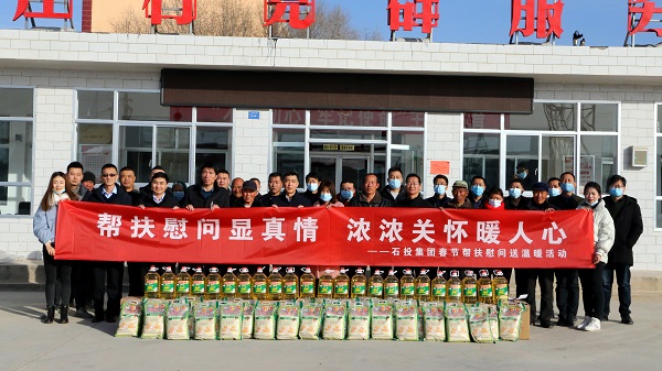 春節(jié)臨近,為使尹家莊村結(jié)對(duì)幫扶戶過(guò)一個(gè)安樂(lè)、祥和的節(jié)日,切實(shí)把溫暖送到群眾心中,2月7日上午,石投集團(tuán)組織開(kāi)展了春節(jié)幫扶慰問(wèn)送溫暖活動(dòng)。