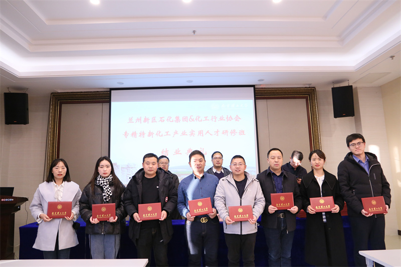 12月3日下午,由新區(qū)石化集團(tuán)與南京理工大學(xué)繼續(xù)教育學(xué)院合作舉辦的“蘭州新區(qū)專(zhuān)精特新化工產(chǎn)業(yè)實(shí)用人才研修班”順利結(jié)業(yè)。結(jié)業(yè)儀式上,為學(xué)員頒發(fā)了結(jié)業(yè)證書(shū)。
