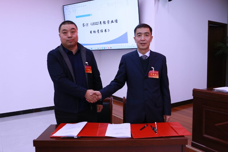 會上,姜錦與集團(tuán)各子公司總經(jīng)理分別簽訂了《2023年經(jīng)營業(yè)績目標(biāo)責(zé)任書》,與集團(tuán)工會主席齊鐵盾簽訂了《工資專項集體合同》。